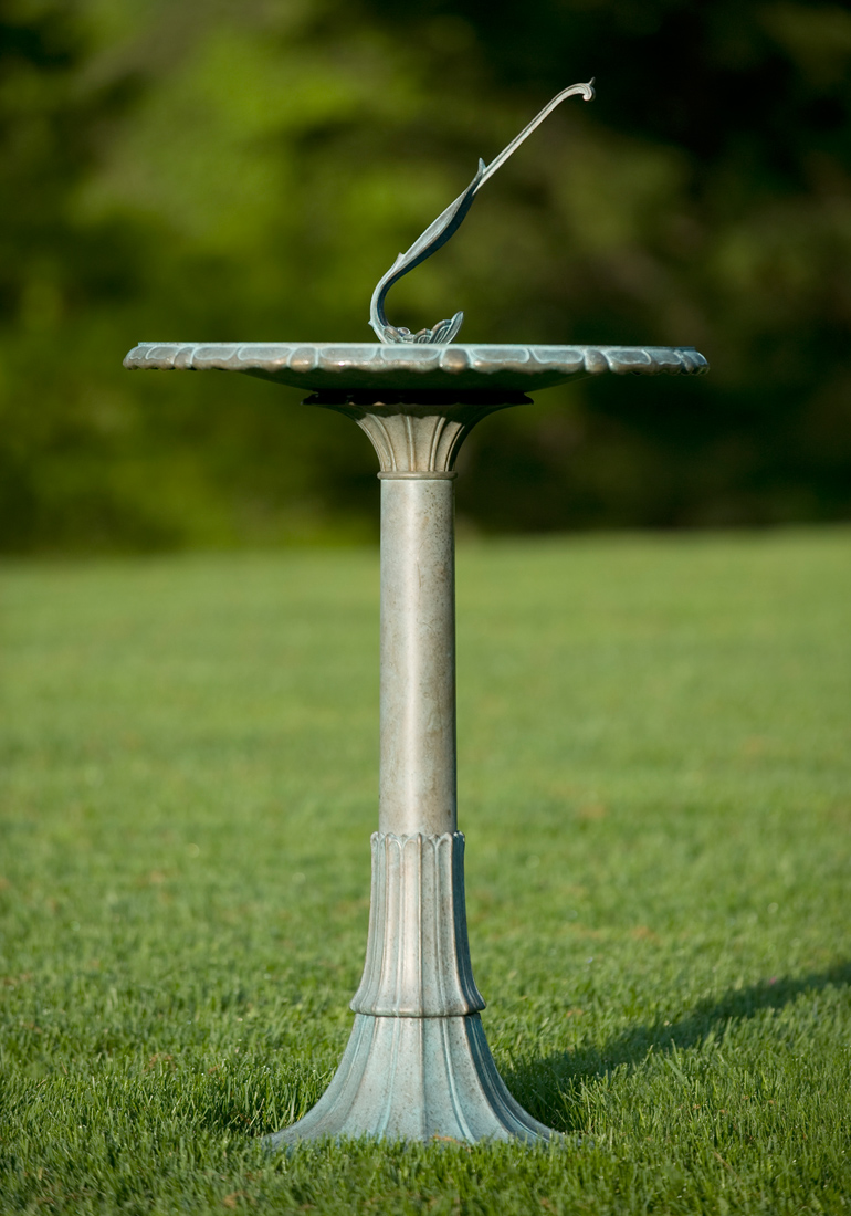 The sundial birdbath makes a perfect addition to your garden, residential landscape design, patio or roof deck. It is also readily customizable, making it the perfect heirloom wedding or anniversary gift, commemorative award or thoughtful memorial.